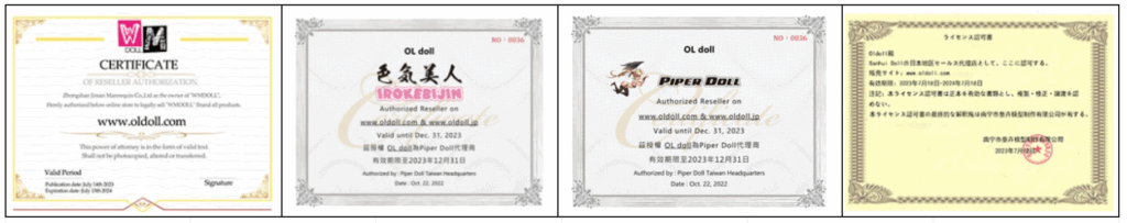 OLDOLL公式サイトでは正規販売代理店である証明書を掲載しています。
