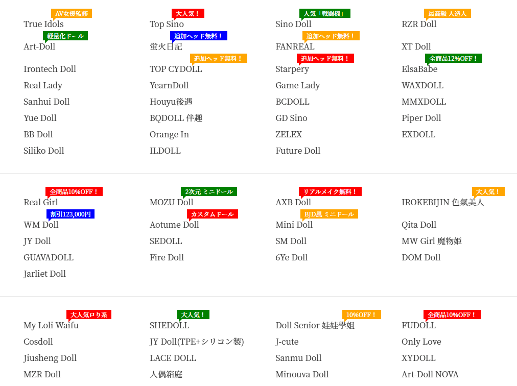 上記の正規販売代理店は、すべて実績があり信頼できるラブドール専門の通販サイトです。