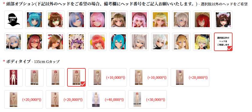 ラブドールを注文するときには、カスタムオプションを選ぶ必要があります。
